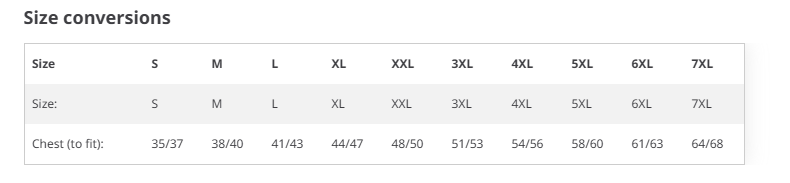 Size | S, M, L, XL, 2XL, 3XL, 4XL, 5XL, 6XL, 7XL |